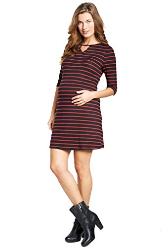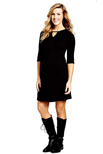 This classic design is easy to wear and works well for the office. The neckline features a triangular keyhole opening. 3/4 sleeves and abov knee length. Sizing (order pre-pregnancy size) XS=2-4 S=4-6 M=8-10 L=10-12 XL=12-14 95% rayon 5% spandex. Hand wash cold, line dry.Feature