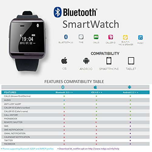 -. Title : Indigi® Universal Bluetooth SmartWatch For Apple iOS Samsung Android OS Nokia Windows SmartPhone Tablet Phablet