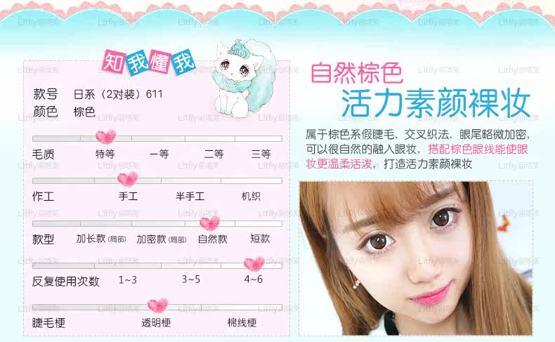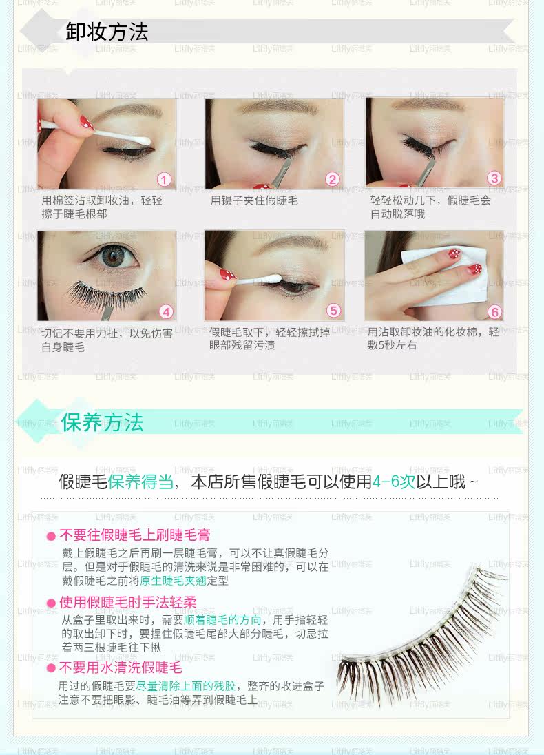 本系列假睫毛选用化纤丝制作,运用手工编织工艺及手工修剪形状,塑造细磨尖毛,佩戴起来自然轻盈,可反复佩戴4-6次!