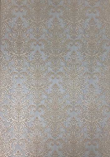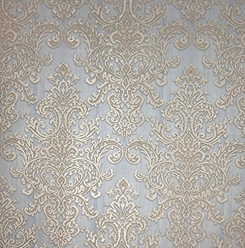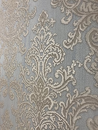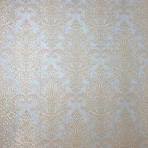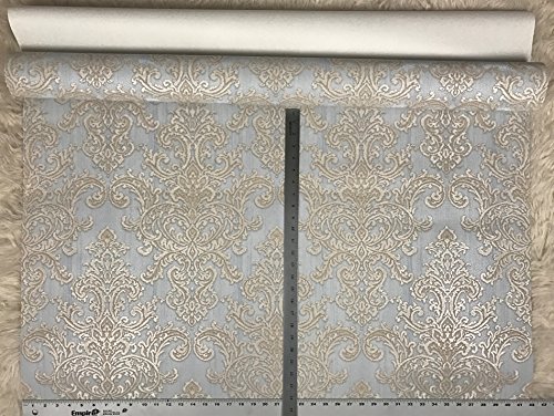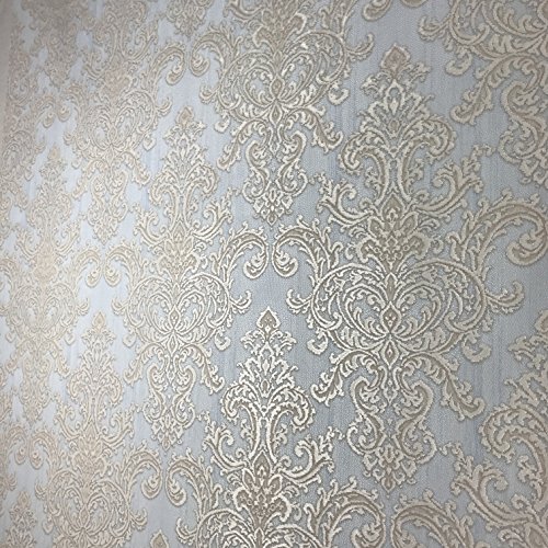 -. Title : embossed QUADRUPLE ROLL 113.52sq.ft Slavyanski wallcovering vintage retro style victorian pattern Vinyl Non-Woven Wallpaper white ivory grey blue beige textured glitters damask gold metallic modern 3D