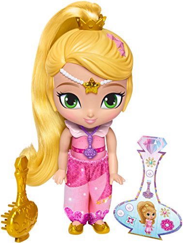 Watch out for Zeta the sneaky sorceress! Zeta wants to become the most powerful person in Zahramay falls, and she plans to do it by stealing shimmer and Shine's genie gems. Can they stop her? this Zeta doll is simply spellbinding with her two-toned purple ponytail and shimmering satin skirt. Zeta stands approximately 15 cm (6 in) and comes with a comb in the shape of her loyal pet Dragon, nazboo!.Feature
