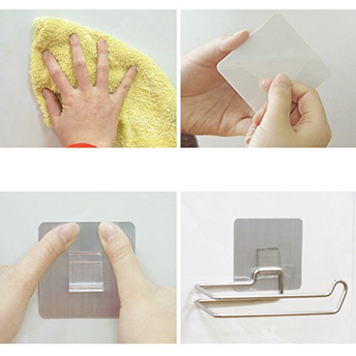 Description: - Brand new and high quality - PVC baseplate, stainless steel wire hooks, strong force solid gum layer. - Max. load 17.64 lb / 8Kg. Punching hole is not necessay, so will Not damage the wall, and this hook is traceless. - Waterproofand oil resistance, can be washable. Easy to instal-peel off coversheet, stick, press PVC baseplate to remove air. - Paper towel holder can save space thus makes your bathroom efficient and convenient in unimaginable ways Specification: - Material: PVC Plastic Stainless Steel - Traceless Hook Size: Approx. 80*80mm/3.15inch - Unit Size(LxW): Approx. 11.4*14cm/4.49*5.51inch Package Includes: 1 Piece Traceless Hook 1 Piece Tissue Paper Holder