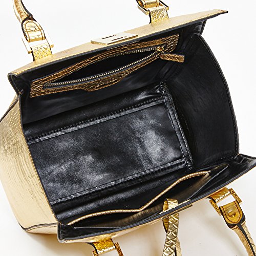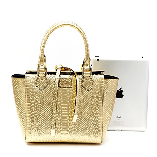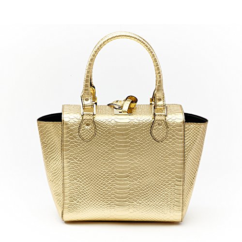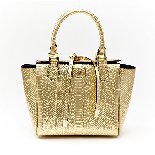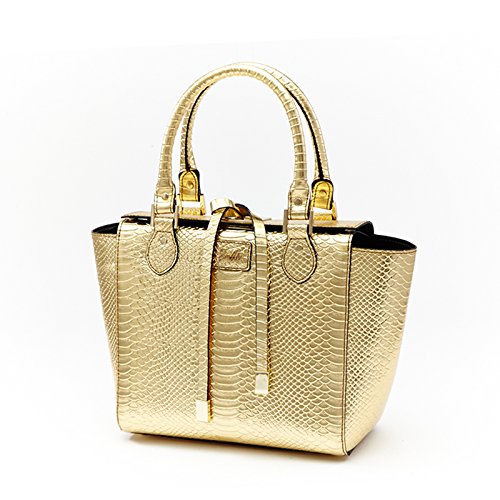 Barbie Retro Fashion Travel Commuter Split Leather Pure Color Pattern Handbag&Cross-body Bag Shoulder Bag Tote Bag (gold)