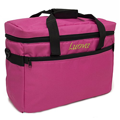 -. Feature : "Louva" meaning to create or having the ability to create is the theme in our new line of sewing and crafting lage that you will enjoy for years to come. / Whether you are going across town or across the country the durable yet affordable Louva lage will protect your machine on the way. / The Luova 18" Sewing Machine Tote in Pink is great to transport a smaller, standard size machine or to use as a project bag when visiting your sewing buddies. / The Luova 18" Sewing Machine Tote in Pink features a zippered front pocket and four internal pockets to keep all of your supplies organized. / *Please Note - Shown accessories not included
