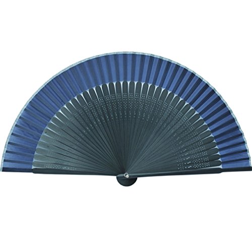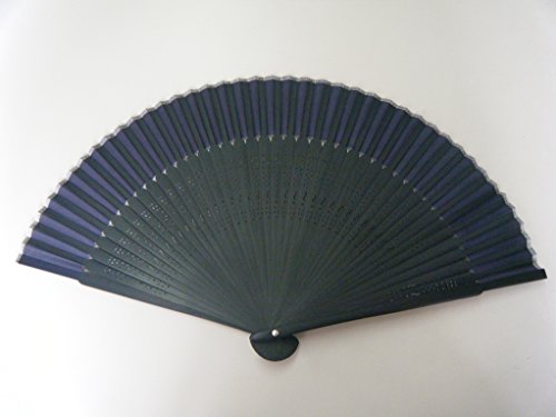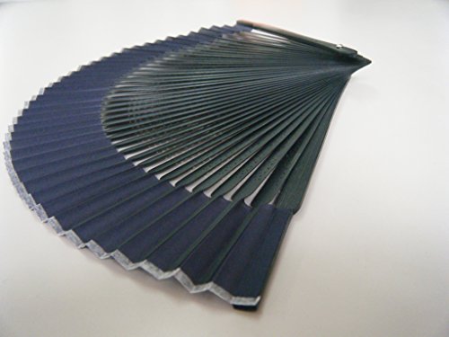 ASAO Hand Made Artisan Men's Silk Sensu Folding Fan Black Guard 8.7 In 42 Folds Short Fabric Navy