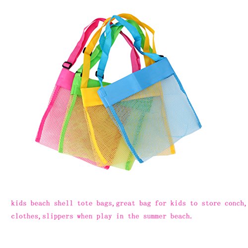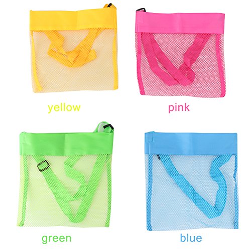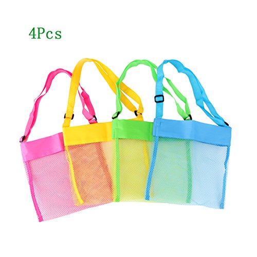 Zamango Beach Mesh Tote Bags Breathable Sea Shell Bags with Adjustable Carrying Straps for Kid's Shell Collection,Swimming equipment Storage,Colorful Set of 4