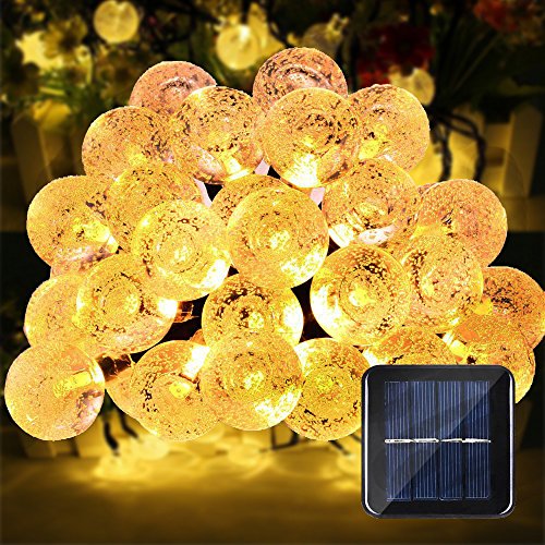 -. Feature : 【DUSK TO DAWN SENSOR】 This energy-saving solar string lights includes a rechargeable solar cell, which is charged through converting solar energy into electricity during day time, without any additional cost required / 【TWO DIFFERENT MODES】steady-on mode and flash mode, solar-powered decorative lights with 30 pieces of LEDs crystal globe string light to create different atmospheres / 【EFFICIENT ABSORPTION & CONVERSION】Built-in rechargeable NI-MH battery,recharge at daytime and light up automatically at night or dark environment. Adjustable solar panel design for direct sunlight in summer and qinter / 【IP44 WATERPROOF】 can withstand all kinds of weather, including heavy rain and snow, up to 8 hours of continuous lighting with a single battery fully charged, it even charges on cloudy winter days / 【SUITABLE FOR INDOOR AND OUTDOOR】Waterproof, can be widely used for decoration of roads, courtyards, shop windows, stores, halls, stages, etc.Best choice for decorating christmas tree as it can create a warm and romantic holiday atmosphere