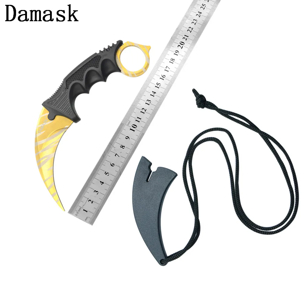 | [해외] 스테인레스 블레이드 골드 패턴 CSGO Karambit 야외 나이프 카운터 스트라이크 캠핑 나이프 생존 캠핑 도구 사냥 파트너 |