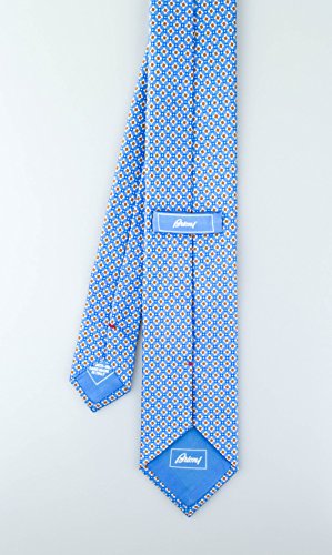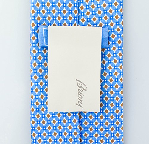 (Brioni)/Accessories/Ties/DIRECT FROM USA/Brioni Slim Satin Blue Geoemtric Print Tie