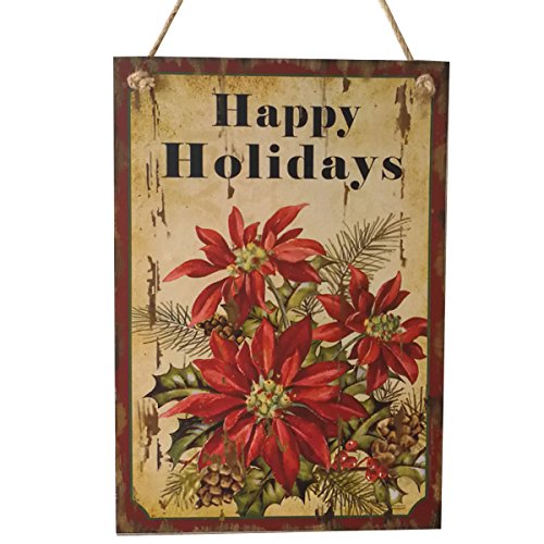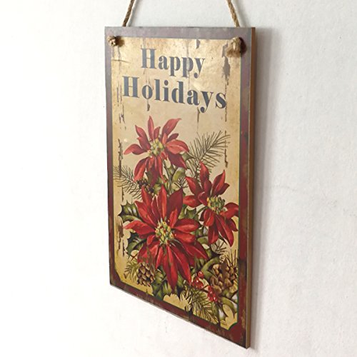 OULII Wooden Christmas Sign Plaque Wall Hanging Christmas Flower Happy Holidays Sign Christmas Gift