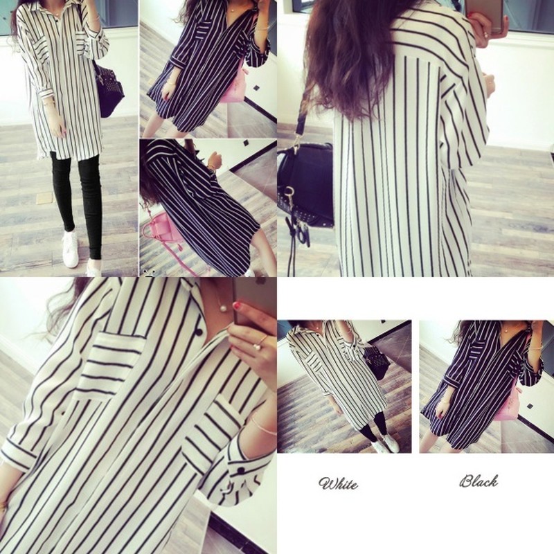| シフォンドレープのストライプ柄シャツワンピース。背の高い方はチュニック丈のガウンとして、スキニーパンツ等に合わせてたコーデがおすすめです◎ ♢サイズ♢(cm) L:肩幅40袖丈37身幅98腰幅106着丈81-87 XL:肩幅41.5袖丈38身幅102腰幅110着丈81.5-87.5 2XL:肩幅43袖丈39身幅106腰幅114着丈82-88 3XL:肩幅44.5袖丈40身幅110腰幅118着丈82.5-88.5 4XL:肩幅46袖丈41身幅114腰幅122着丈83-89 ♢カラー♢ ホワイト・ブラック ♢素材♢ ポリエステル ♢シーズン♢ 秋 【商品について】