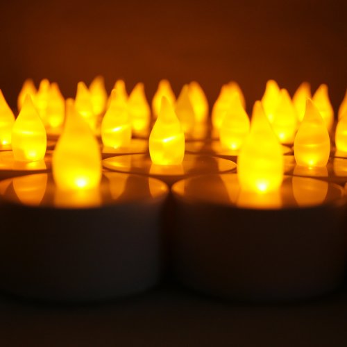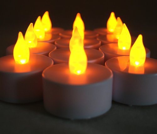 Battery-powered Flameless LED Flickering Flicker Tealight Candles Wedding Party Table Decoration, (Amber), 1-Dozen Pack (12 pieces)~BlueDot Trading