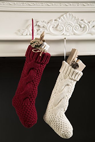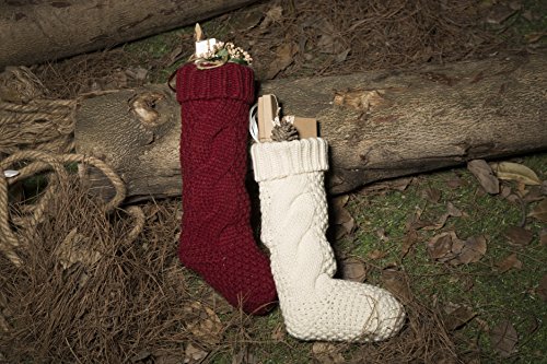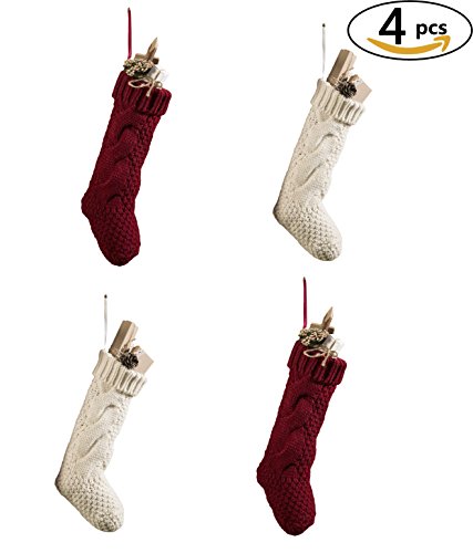Christmas Stockings, Knit Christmas Stockings, Unique Burgundy and Ivory White Knit Christmas Stockings 15" Pack 4 Komotu
