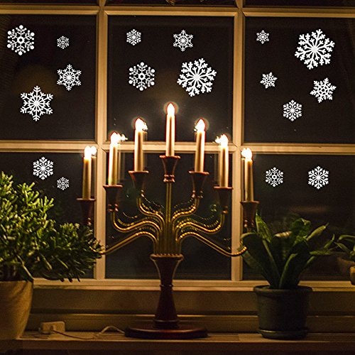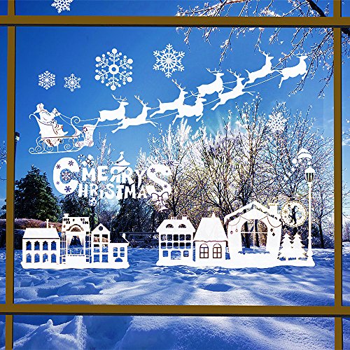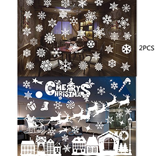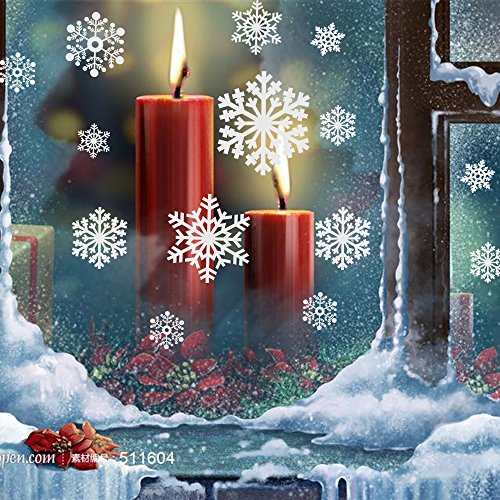 YLINGSU 66+ Large Christmas Snowflake Window Clings Decorations - Baubles / elk -Winter Wonderland Xmas Party Stickers Decal Ornaments (white)