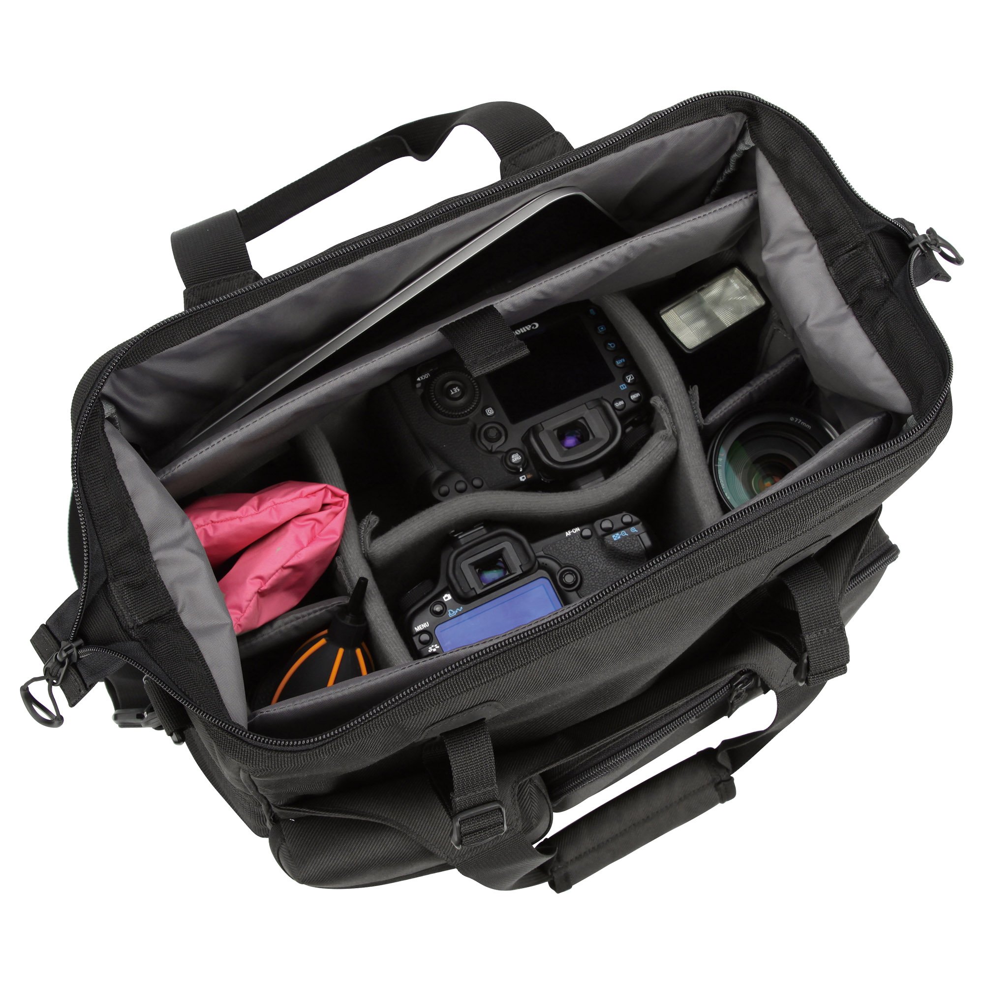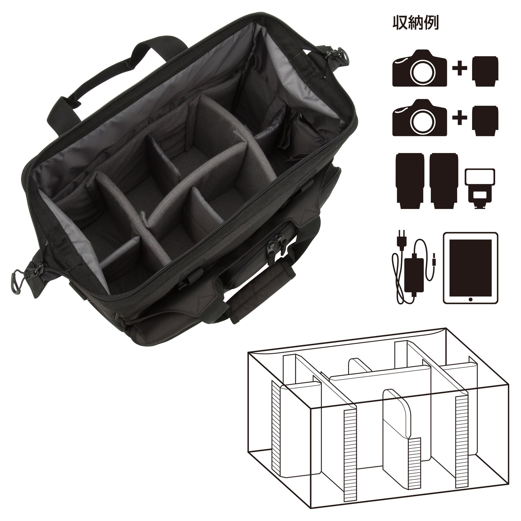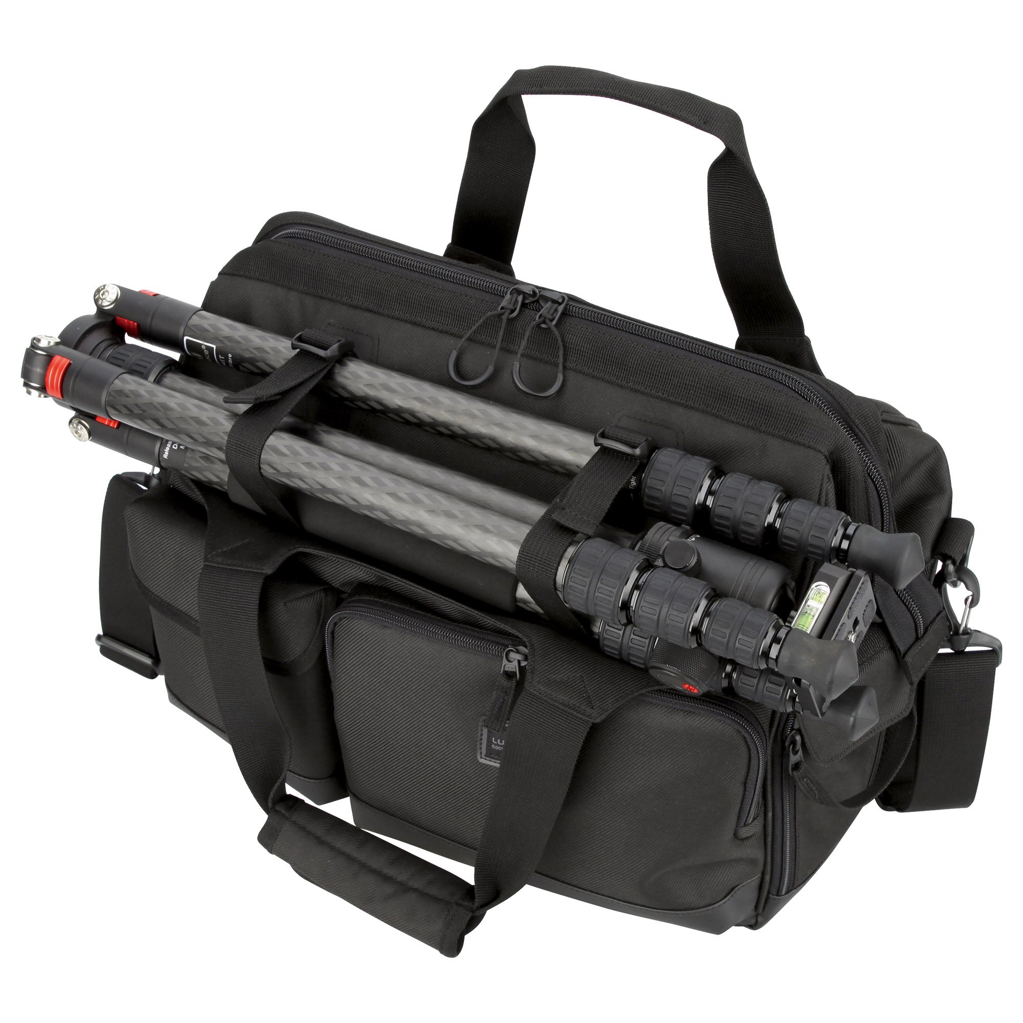 ■ Equipped with a front belt that can hold small tripods and wear etc.