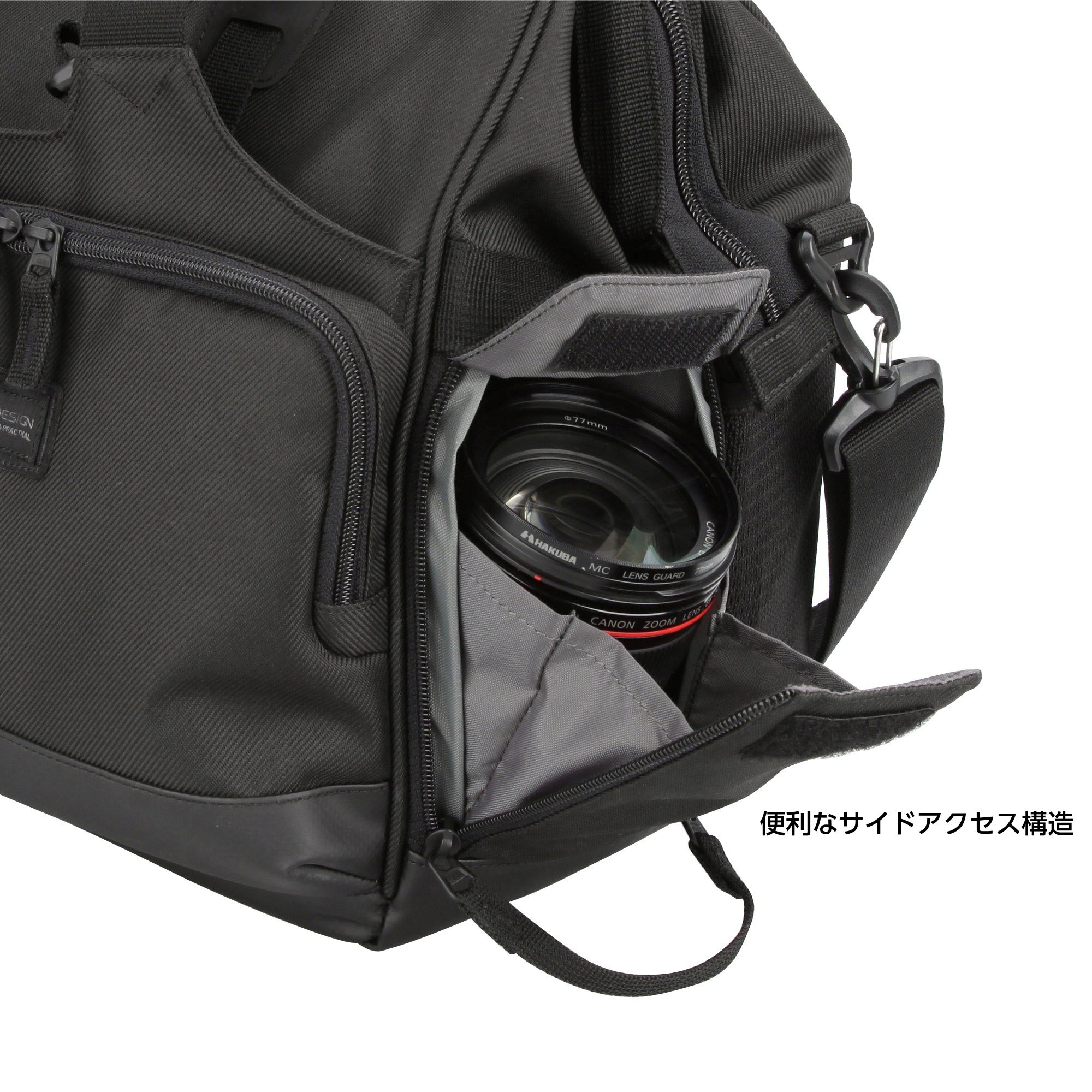 ■ Side access structure that allows the lens to be taken in and out from the side without opening the main fastener.
