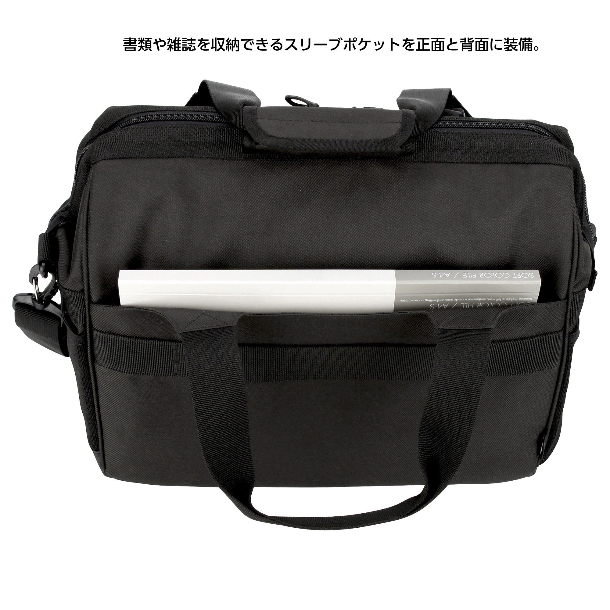 ■ Flap type and zipper type front pocket, mesh side pocket, sleeve pocket and magazines and documents that can put in a solid storage capacity.