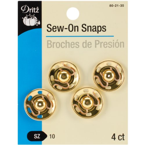 Gold Sew-On Snaps-Size 10 4/Pkg
