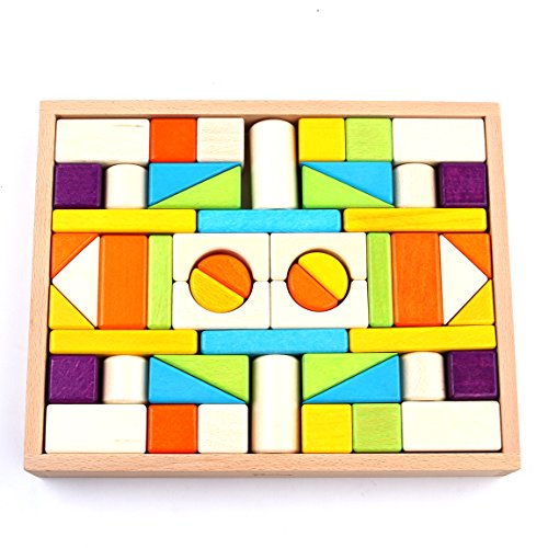 -. Title : Wooden Blocks - iPlay, iLearn Colored wood block set Natural Wooden Stacking Cubes Blocks 54 PCS