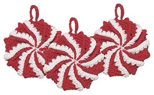 Now Designs Spiral Tawashi Dishcloths, Set of Three, Peppermint Red and White
