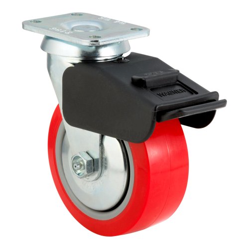 E.R. Wagner Plate Caster, Swivel with Total-Lock Brake, Thread Guard, Polyurethane on Polyolefin Wheel