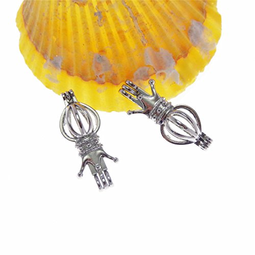 JulieWang 10pcs Anitqued Silver Small Locket for Aromatherapy Essential Oil Diffuser Pendant Charms - Crown Cage
