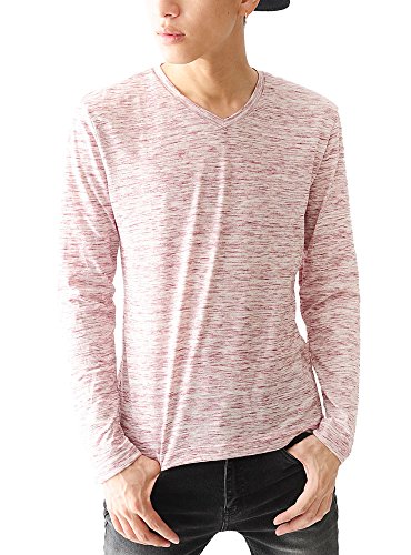 -. Title : (ベストマート)BestMart M/L/LL/3L/4L/5L 大人 引き揃え 杢調 長袖 Tシャツ メンズ Vネック 大きいサイズ 622973
