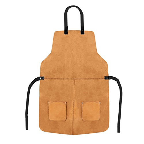 Big and Tall Split-Cowhide Leather Grinder's Shop Utility Apron With Pockets - Heat Resistant
