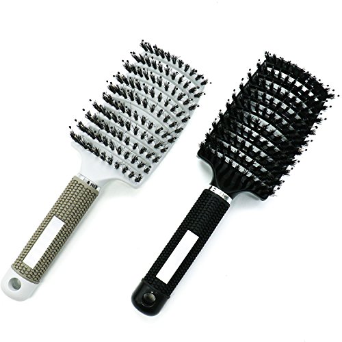 HUELE 2 Pcs Boar Bristle Hair Brush set Curved Vented Styling Hair Brush Detangling Thick Hair Massage Blow Drying Brush