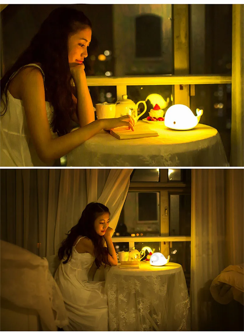 Novelty Dolphin Touch Sensor Night Light USB Multicolor LED Light Silicone Gel Pat Night Lamp for Child Bedroom Desk Lights 2017