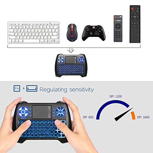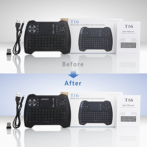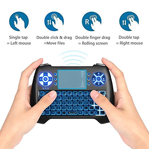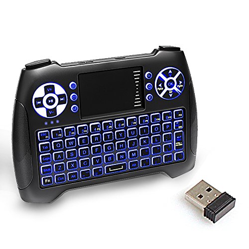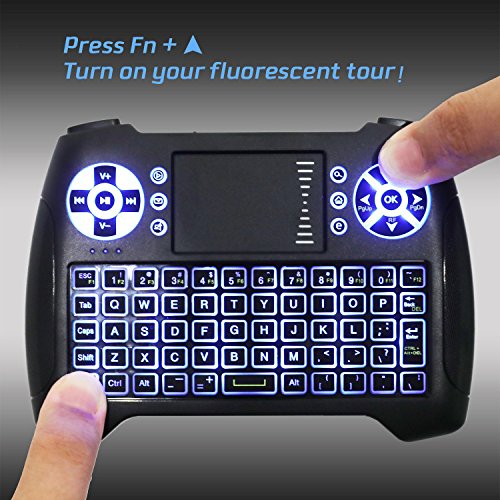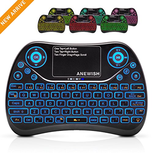 (2018 Latest, Backlit) ANEWISH 2.4GHz Mini Wireless Keyboard with Touchpad Mouse Combo, Rechargable Li-ion Battery & Multi-media Handheld Remote for Google Android TV Box,PS3,PC,PAD