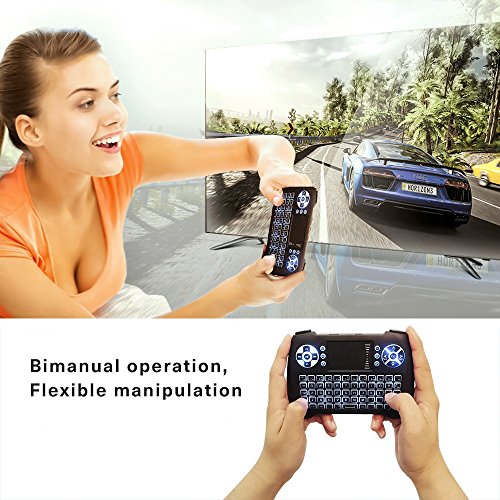GAME HANDLE DESIGN: The mini wireless keyboard android is designed like a handle for game player. There are 2 round polorus on the right and left side of the keyboard. At the same time, it also looks like a really keyboard for PC or Notebook