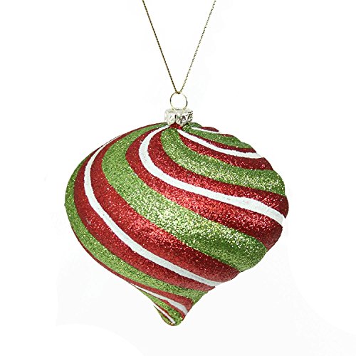 Northlight 3.5" Merry & Bright Red, White and Green Glitter Swirl Shatterproof Christmas Onion Ornament