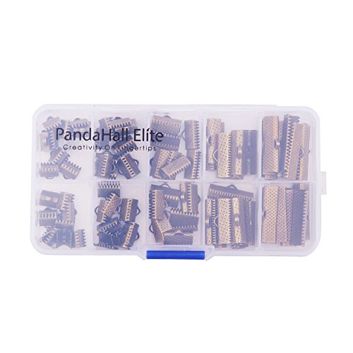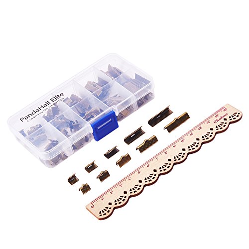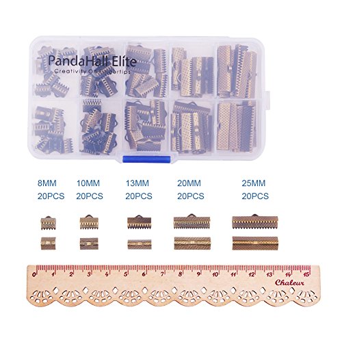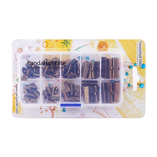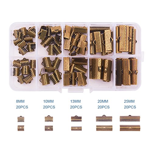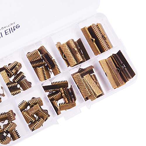 PandaHall Elite 1 Box 100Pcs Assorted Sizes of Antique Bronze Ribbon Clamp End Crimps Sets Size 8-25x6-8x5mm for Jewelry Making