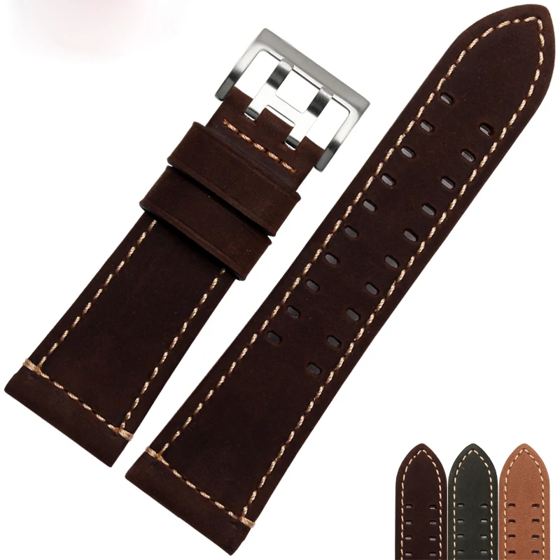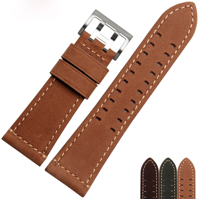 | [해외]최신! 프로스트 가죽 시계 밴드 남성 Rumenos 1945 1879 1801 군사 시계 스트랩 26 미리메터 시계 액세서리 |