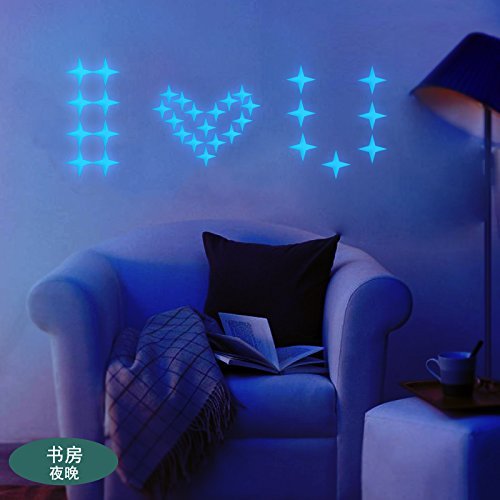 Amaonm® 24 Pcs Glow in the Dark Stars Wall Stickers Arts & Crafts Children's Decorative Stickers Noctilucent Sticker Luminous Star Wall Decals Home Decoration Art Decor for Kids Room Bedroom Bathroom Study Room Living Room (Blue)