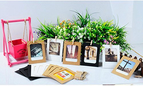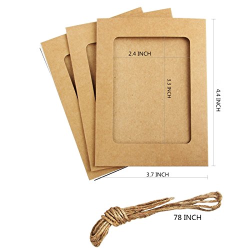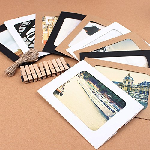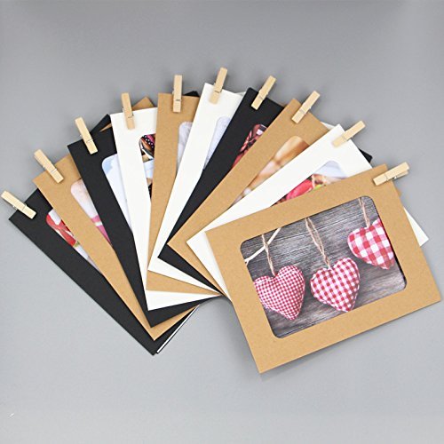 10 pcs DIY Cardboard Photo Frame Wall Deco with Clips and Hemp Rope - Fits 3"x 4" Pictures (Three Color Mix) (3x4)