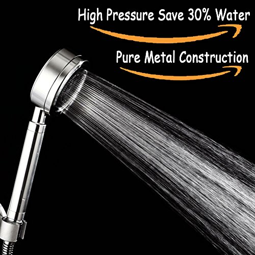Hand Shower Head,Pure Metal Handheld Shower Head Extrem High Pressure Space-Grade Aluminum Spayer with Filter For Hard Water Saving Controller Flow Control Resistor 1.8GMP-Original Color Silver