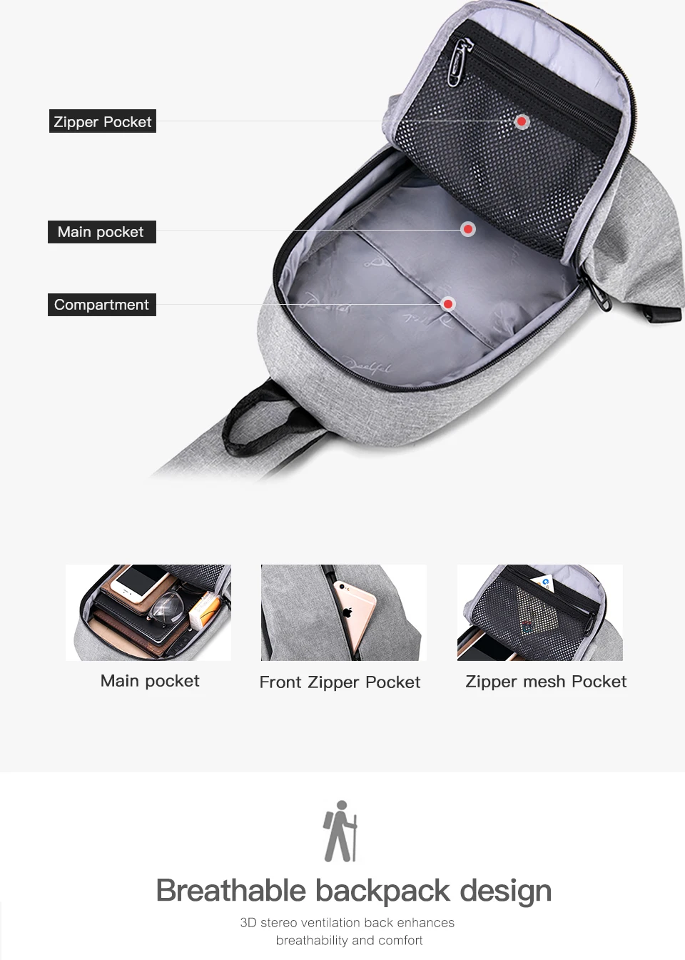 Interior:Interior Compartment,Interior Zipper Pocket,Interior Slot Pocket,Cell Phone Pocket