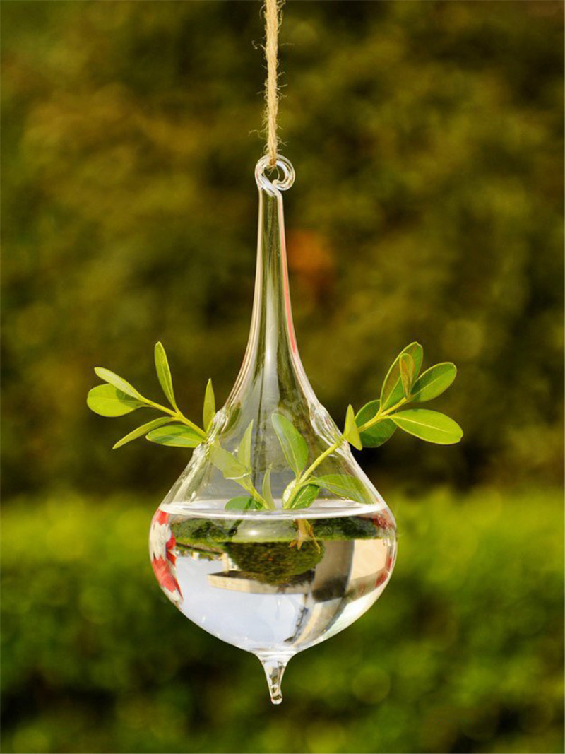 Grow some small aquatic plants in the crystal flower vase and hang it outside of the window to improve your mood.