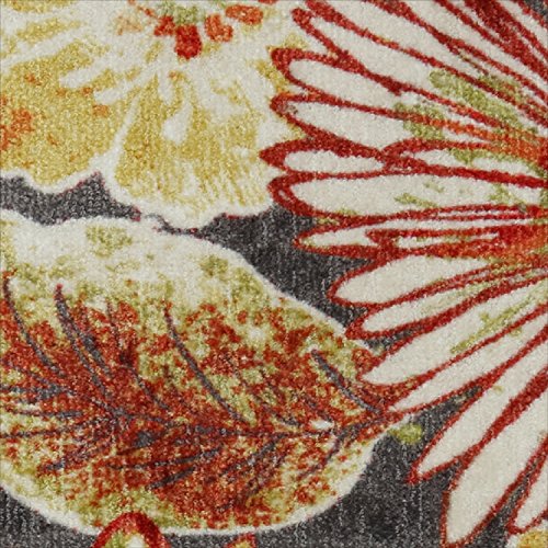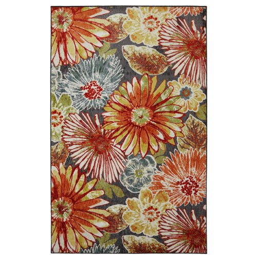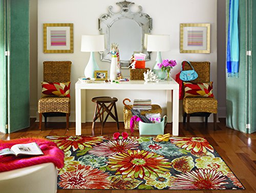 Fresh and vivid colors give this oversized floral pattern a look that is on trend as well as fun. Pair this design with neutral furniture to create a dramatic visual statement for your floor. Printed on the same machines that manufacture one of the world’s leading brands of printed carpet, this rug is extremely durable and vibrant. This technology allows the use of multiple colors to create a rug that is wonderfully designed and applicable to any room in your home. Printed on the same machines that manufacture one of the world’s leading brands of printed carpet, this rug is extremely durable and vibrant. This technology allows the use of multiple colors to create a rug that is wonderfully designed and applicable to any room in your home. With a gorgeous contemporary style and floral print, this rug's pile height is 13/32 in high. Remember to keep the pile and fabrics in tip top shape. Area rugs should be spot cleaned with a solution of mild detergent and water or cleaned professionally. Regular vacuuming helps rugs remain attractive and serviceable. Only the best quality materials will do. This rug is printed with a cut pile on Wear Dated 100% nylon, backed with latex. Made in USA.Feature