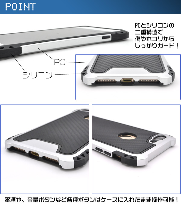 PCとシリコンの二重構造で傷、ほこり、衝撃からiPhone7 Plusを守ります。