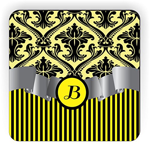 Rikki Knight Letter "B" Initial Yellow Damask and Stripes Monogrammed Design Square Fridge Magnet