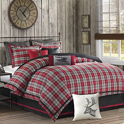 A bold, classic plaid of red, black and white is the foundation for this cozy and inviting collection. The vibrant red in this Williamsport Plaid decorative pillow pops the color in this collection.Feature