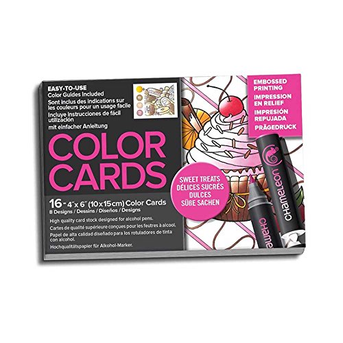-. Binding : Office Product -. Brand : Chameleon -. Color : White -. EAN : 0812751022107 -. Feature : Package of 16 cards to color - 2 each of 8 Sweet Treats designs / Embossed designs have raised edges- making coloring inside the lines easy / Includes Full color guide sheet and shading guides for each image / Guides reference which Chameleon Marker colors to use / Finished cards can be mailed or hung as art! -. Label : CHAMELEON ART PRODUCTS -. Manufacturer : CHAMELEON ART PRODUCTS -. MPN : CC0108 -. NumberOfItems : 16 -. PackageQuantity : 1 -. PartNumber : CC0108 -. ProductGroup : Office Product -. ProductTypeName : PAPER_PRODUCT -. Publisher : CHAMELEON ART PRODUCTS -. Studio : CHAMELEON ART PRODUCTS -. Title : Chameleon Color Cards Embossed Sweet Treats -. UPC : 812751022107
