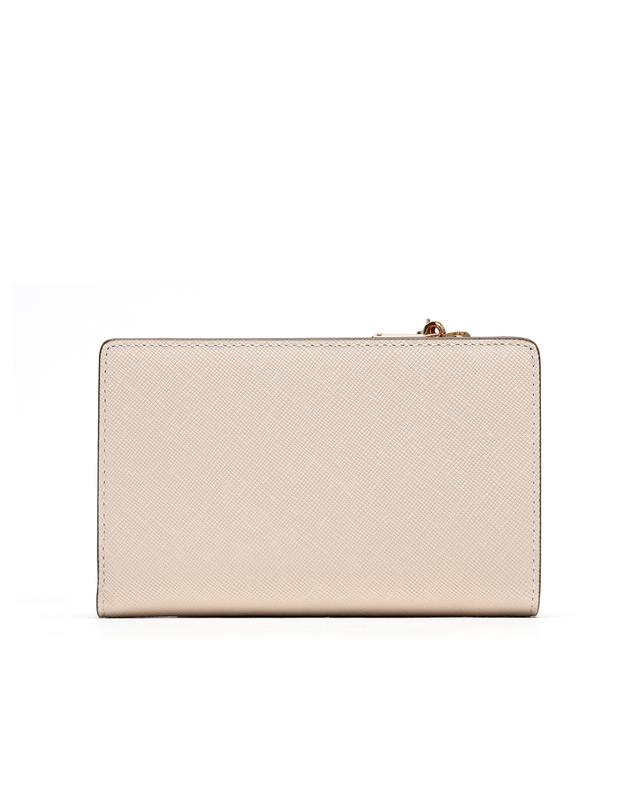 견고한 사피아노 가죽을 사용하여 중앙에 골드 로고 장식으로 포인트를 준 심플한 디자인의 2단 중지갑입니다.
