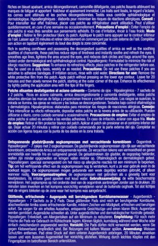 These soothing eye patches refresh, moisturize and brighten tired eyes. Formulated with a unique combination of: cornflower to naturally soothe and reduce puffiness; arnica to drain the eye contour; and chamomile to refresh and provide anti-inflammatory benefits. Eyes are instantly brighter with under-eye puffiness and fine-lines visibly reduced. Ophthalmologist tested. Dermatologist and ophthalmologist tested. Hypoallergenic. Sodium chloride-free, sulfate-free.Feature