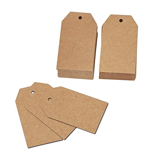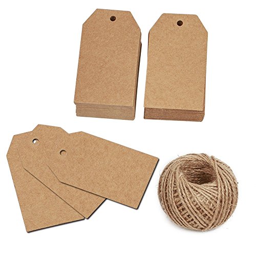 KINGLAKE 100 Pcs 7x4cm Kraft Paper Christmas Gift Tags with String Vintage Wedding Hang Tags with 100 Feet Natural Jute Twine
