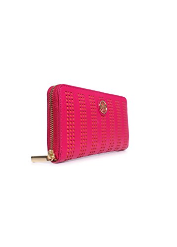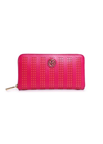 Tory Burch Robinson Perf Zip Continental Wallet in Carnation Red/ Poppy Coral