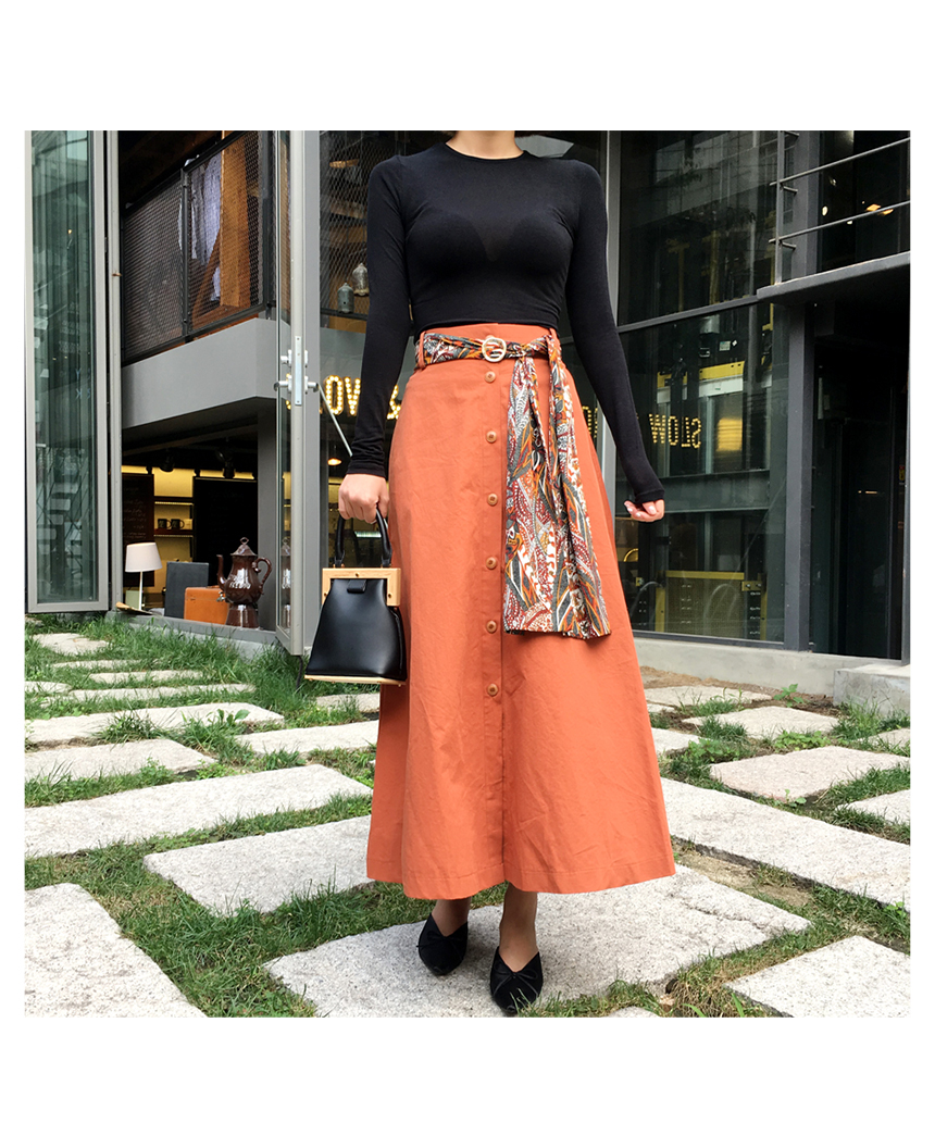 20 flared skirts Autumn unique Long Daily Look A-line belt set
